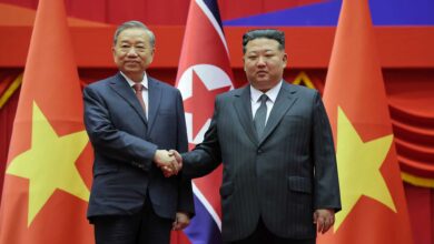 After a long talk with him, Kim Jong Il posed for a photograph with him.