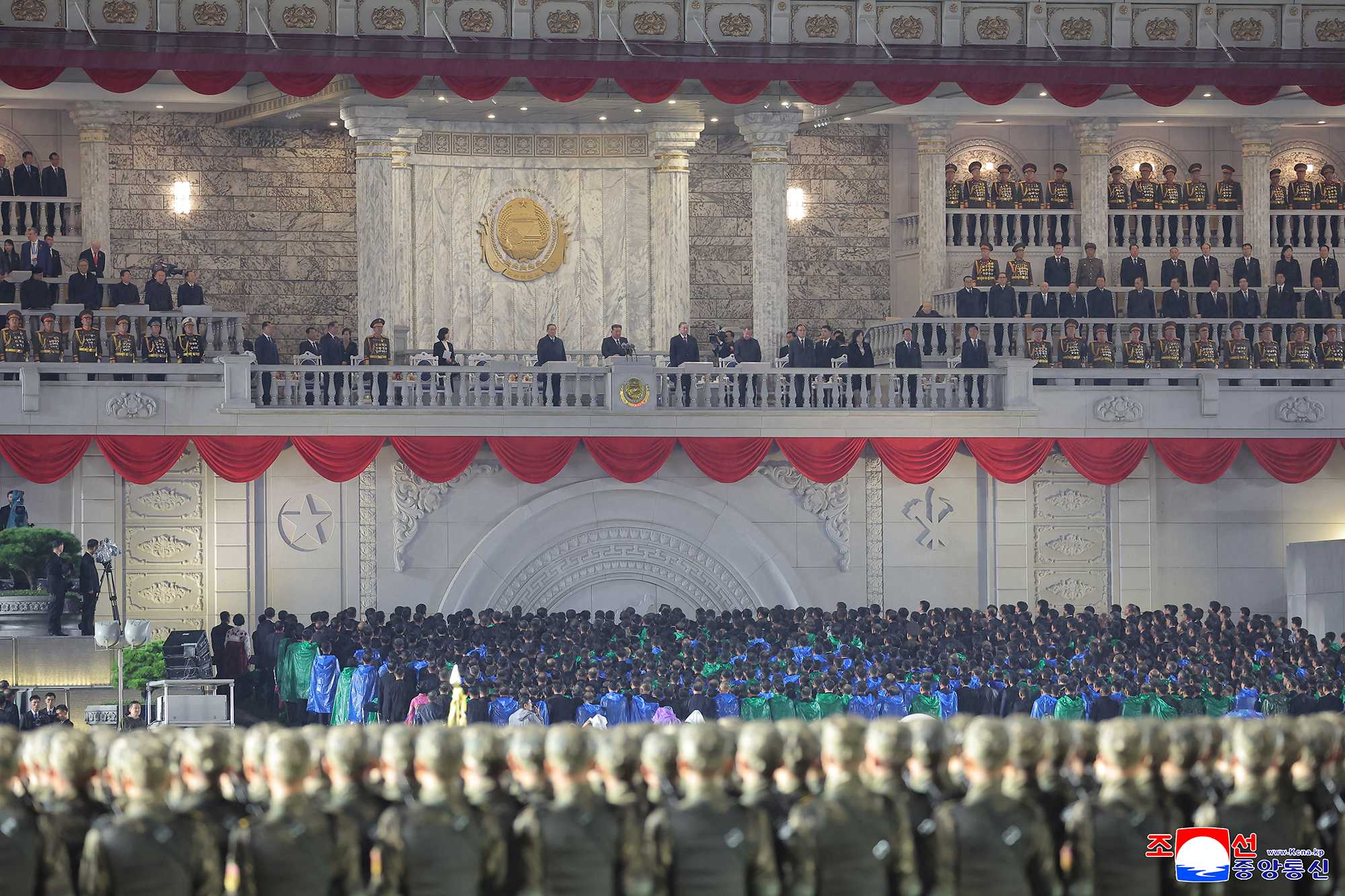 Taking the platform were members of the Presidium of the Political Bureau of the Central Committee of the WPK and other leading officials of the Party and the government, chief secretaries of the provincial Party committees, major leading personnel of the military and heads of the congratulatory groups of overseas compatriots.