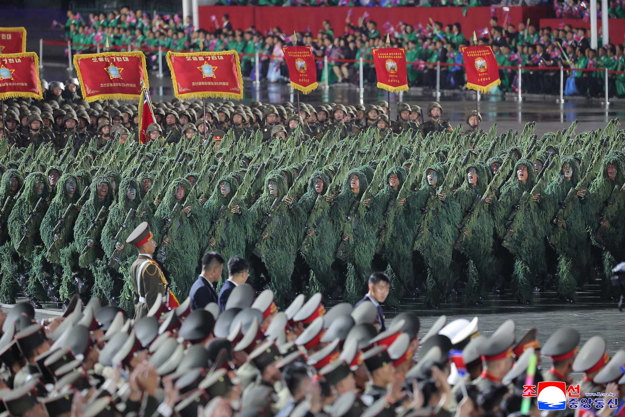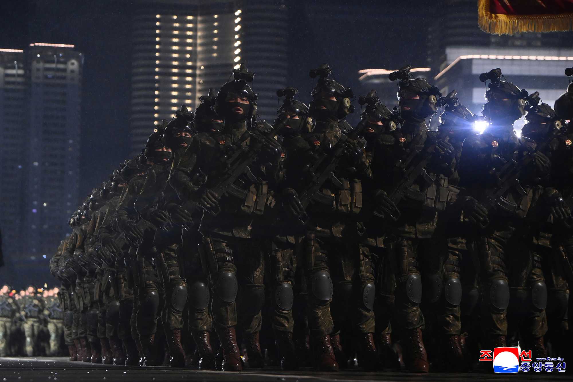 The column of the unit for mountain warfare in the enemy rear which will cut the heart of the enemy, the column of the seaborne assault battalion which will neutralize every defence line and the column of the matchless overseas operations units which created a great new history of the KPA and fully demonstrated the mettle of Koreans with their militant bravery and legendary military feats to defend the honour and dignity of their country marched past majestically under the review of the great brilliant commander.