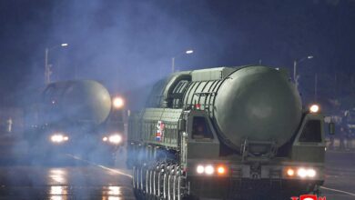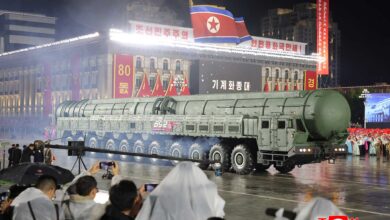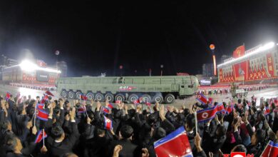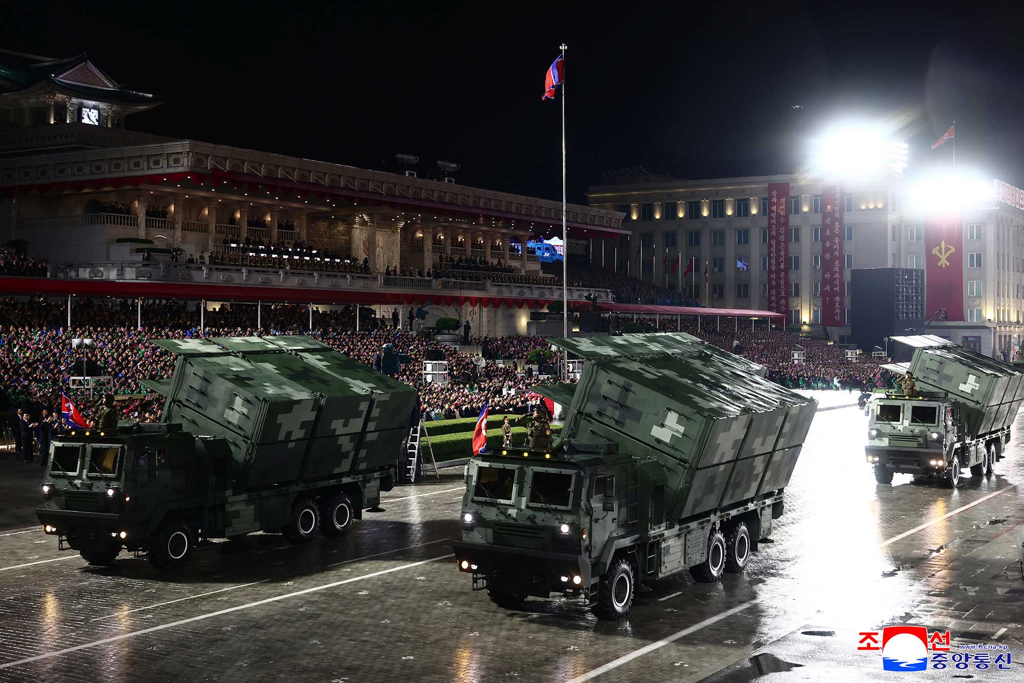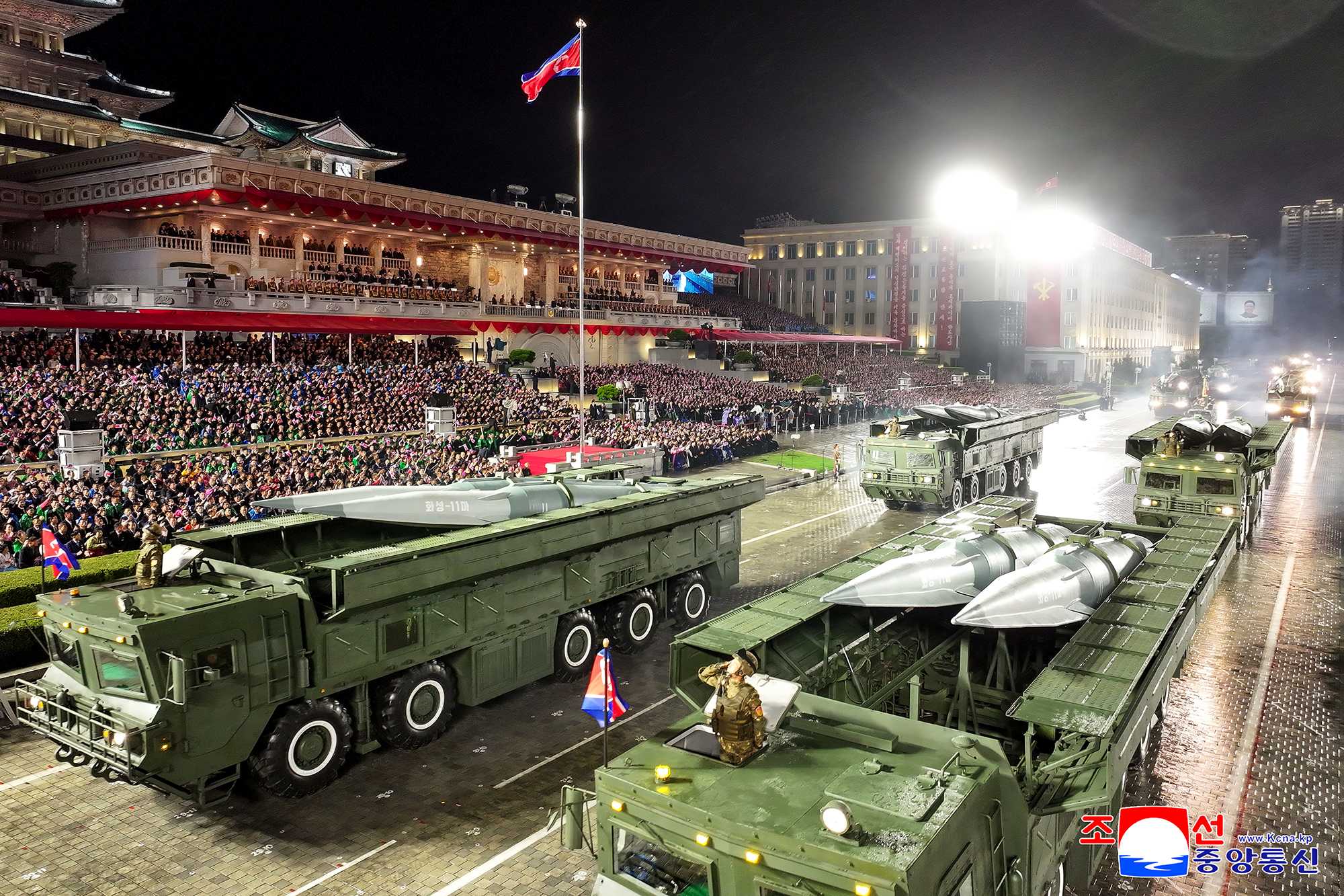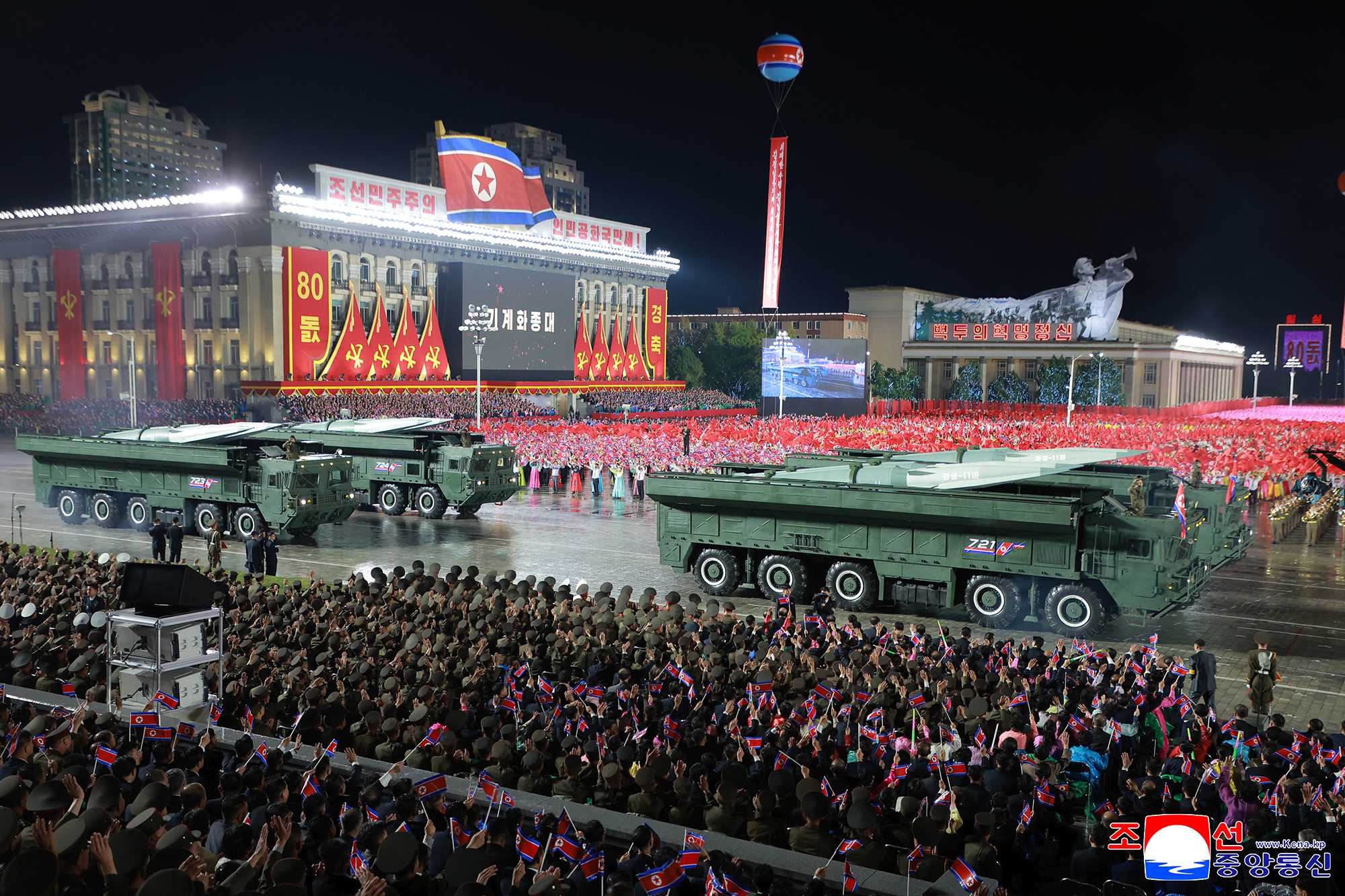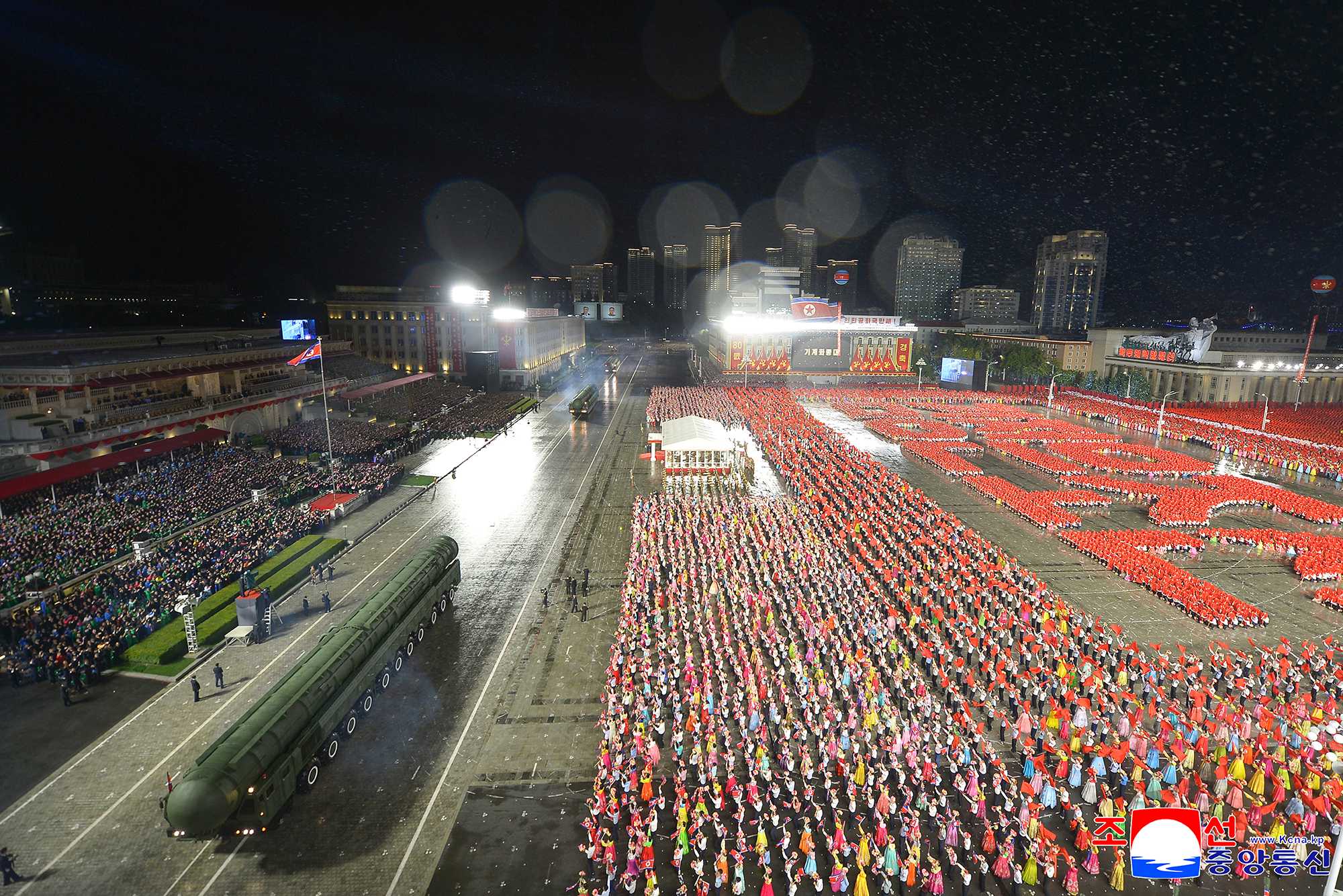 The spectators broke into the most enthusiastic cheers when the column of Hwasongpho-20 ICBMs, the most powerful nuclear strategic weapon system of the DPRK, entered the square, filling the track.