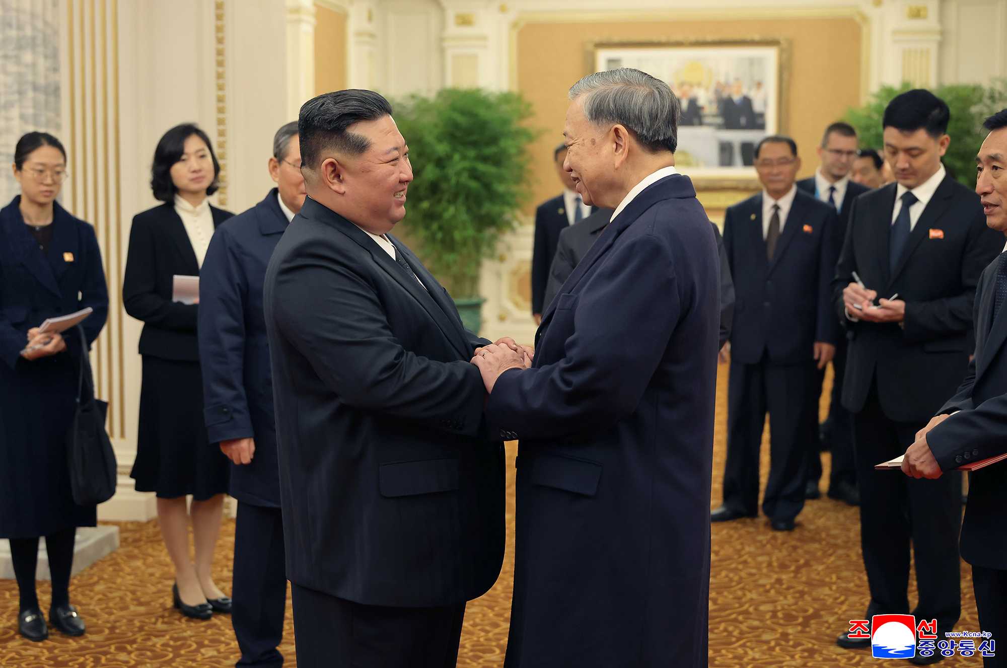 Kim Jong Un, general secretary of the Workers’ Party of Korea and president of the State Affairs of the Democratic People’s Republic of Korea, reviewed the guard of honour of the KPA and colours of the combined units at all levels.