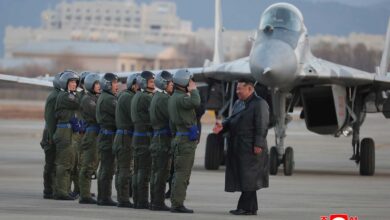 The confrontation in the sky, which inevitably ends in one side’s victory or defeat and survival or death, is a showdown in ideology and faith before being a clash between military hardware pieces and the victory in the battle is decided not by the ultra-modern fighters but by pilots armed with an indomitable spirit, he said, adding that it is the source of great strength and pride of the WPK, the DPRK and its people to have an elite air force with the overwhelming political and ideological might which is beyond compare with that of any armies of other countries. And he had a photo taken with the pilots.