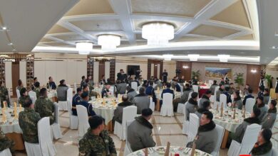Kim Jong Un met the discharged generals who were specially invited to the celebrations of the Day of Airmen and highly appreciated the life of devotion and feats of the veteran generals of the Air Force who devoted their whole life to increasing the defence capability of the country’s airspace.