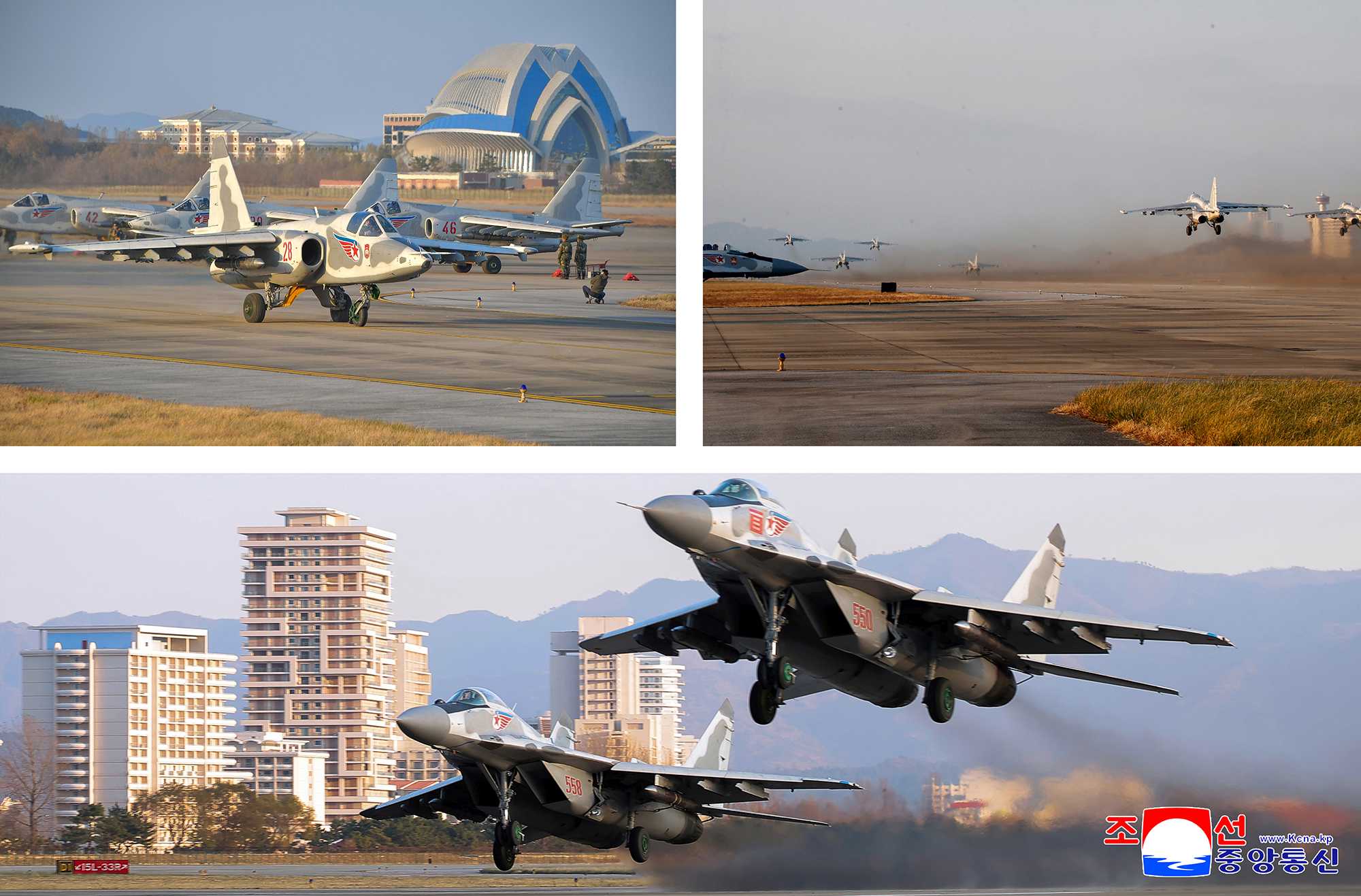 Aircraft of heroic pilots of the DPRK took off one after another with deafening sound to significantly celebrate their holiday.
