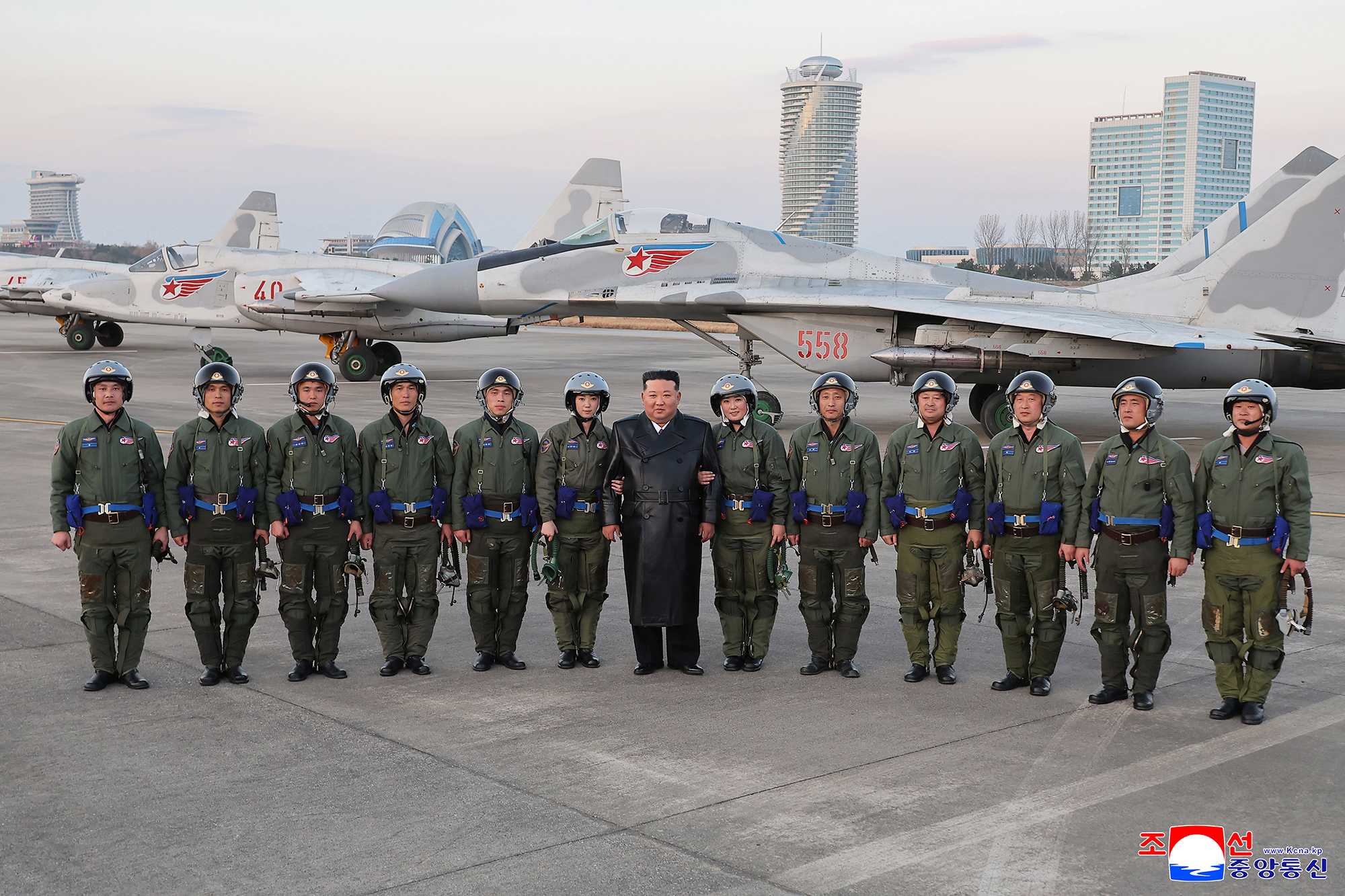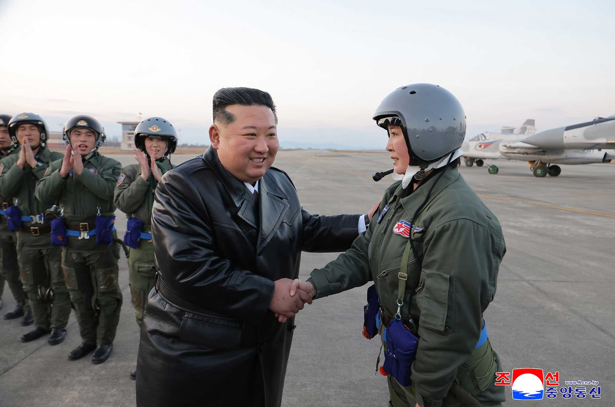 Kim Jong Un met the pilots after their demonstration flight and shook hands with every one of them, praising them for demonstrating a high level of aviation capable of perfectly carrying out any combat mission.