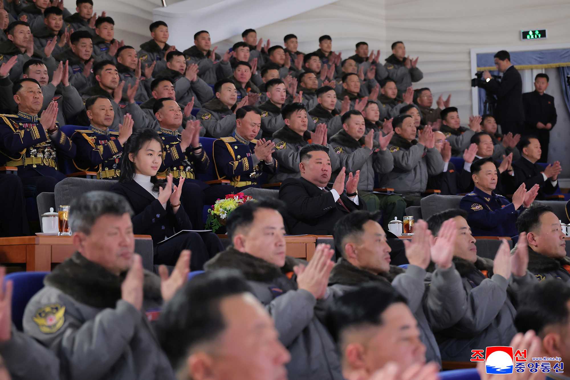 Kim Jong Un enjoyed the performance together with officers and men of the Air Force.