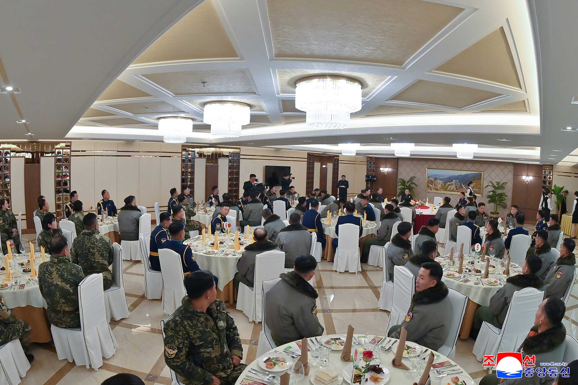 Kim Jong Un attended the banquet together with leading officials of the Central Committee of the WPK and commanding officers of the Ministry of National Defence.