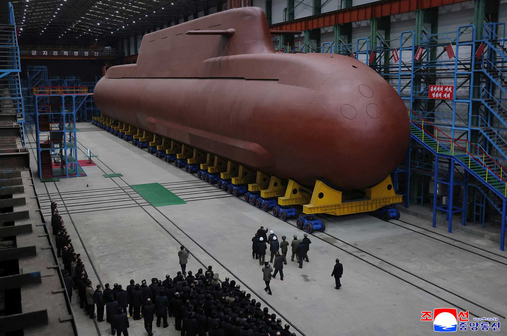 Kim Jong Un, general secretary of the Workers’ Party of Korea and president of the State Affairs of the Democratic People’s Republic of Korea, provided on-the-spot guidance for the building of an 8 700-tonnage nuclear-powered strategic guided missile submarine.