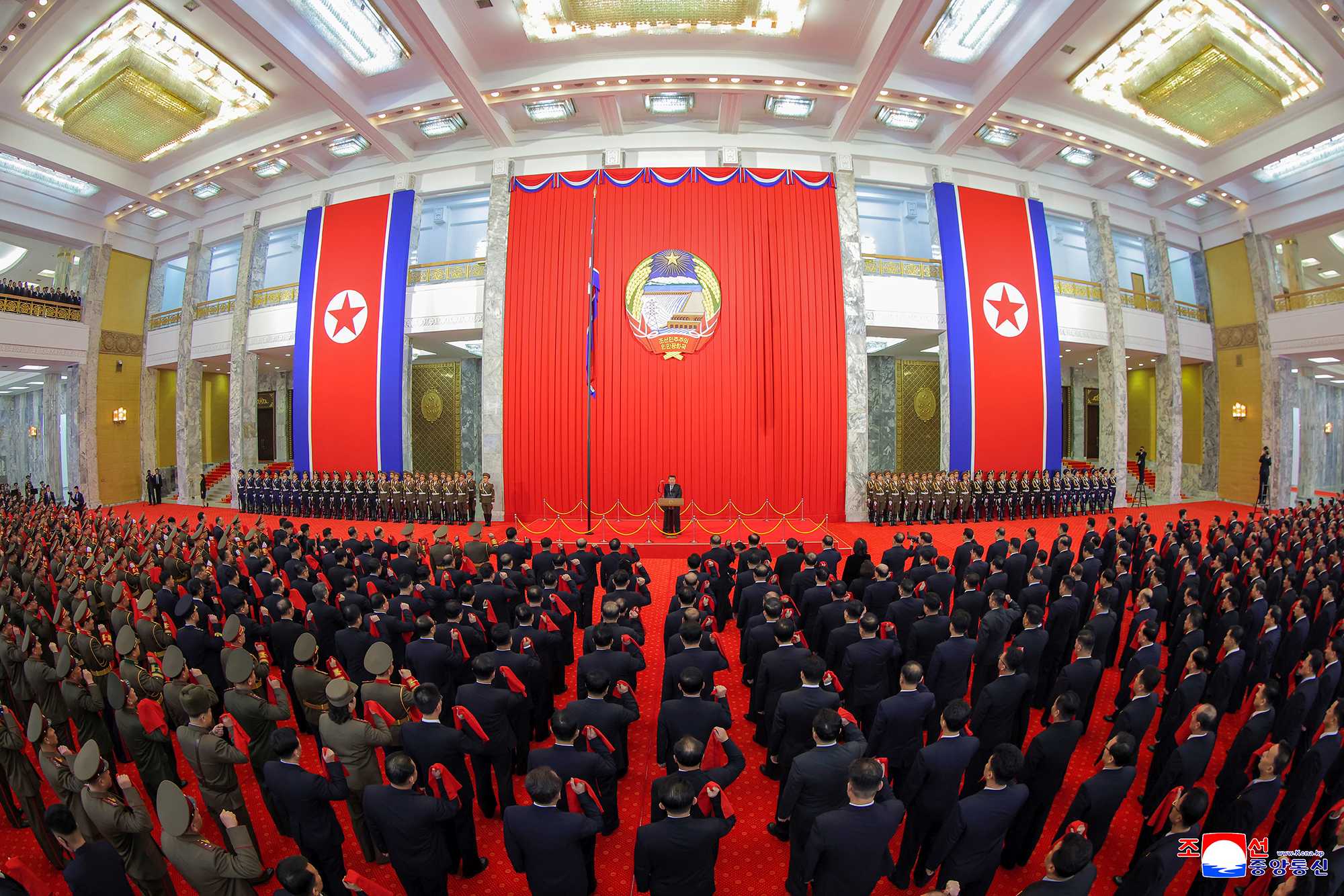 Led by the head of state, the participants solemnly vowed before the national flag to strive with heart and soul to glorify forever the greatness and beauty of the country by always remaining infinitely faithful to promoting the people’s wellbeing and the growth and development of the state, thoroughly safeguarding the Constitution of the Republic, strictly fulfilling their legal obligations, firmly defending the socialist ideals and system and staying loyal to their beloved motherland as persons responsible for defending the sovereignty of the DPRK and the interests of the Korean people and serving the state and the people.