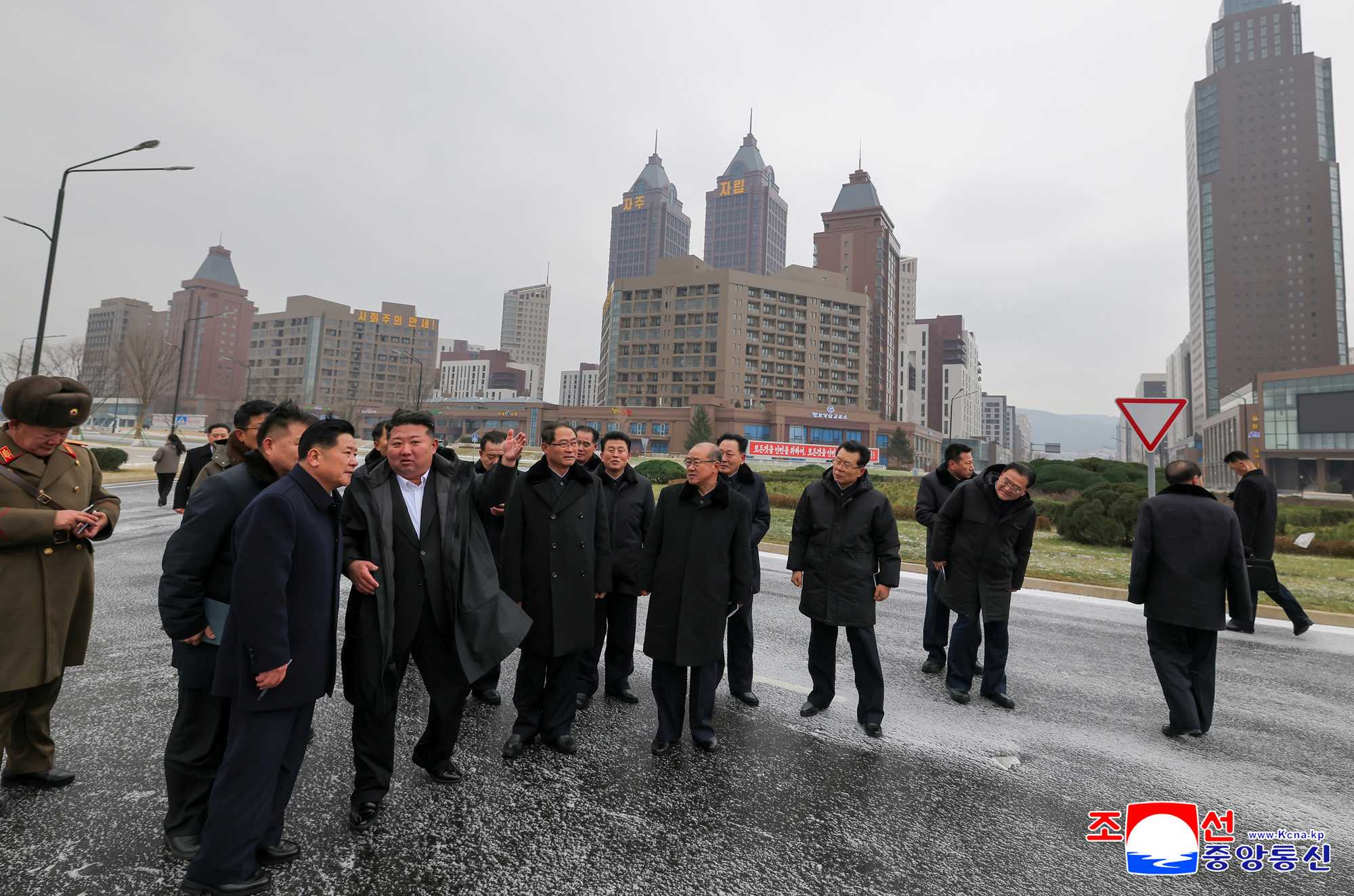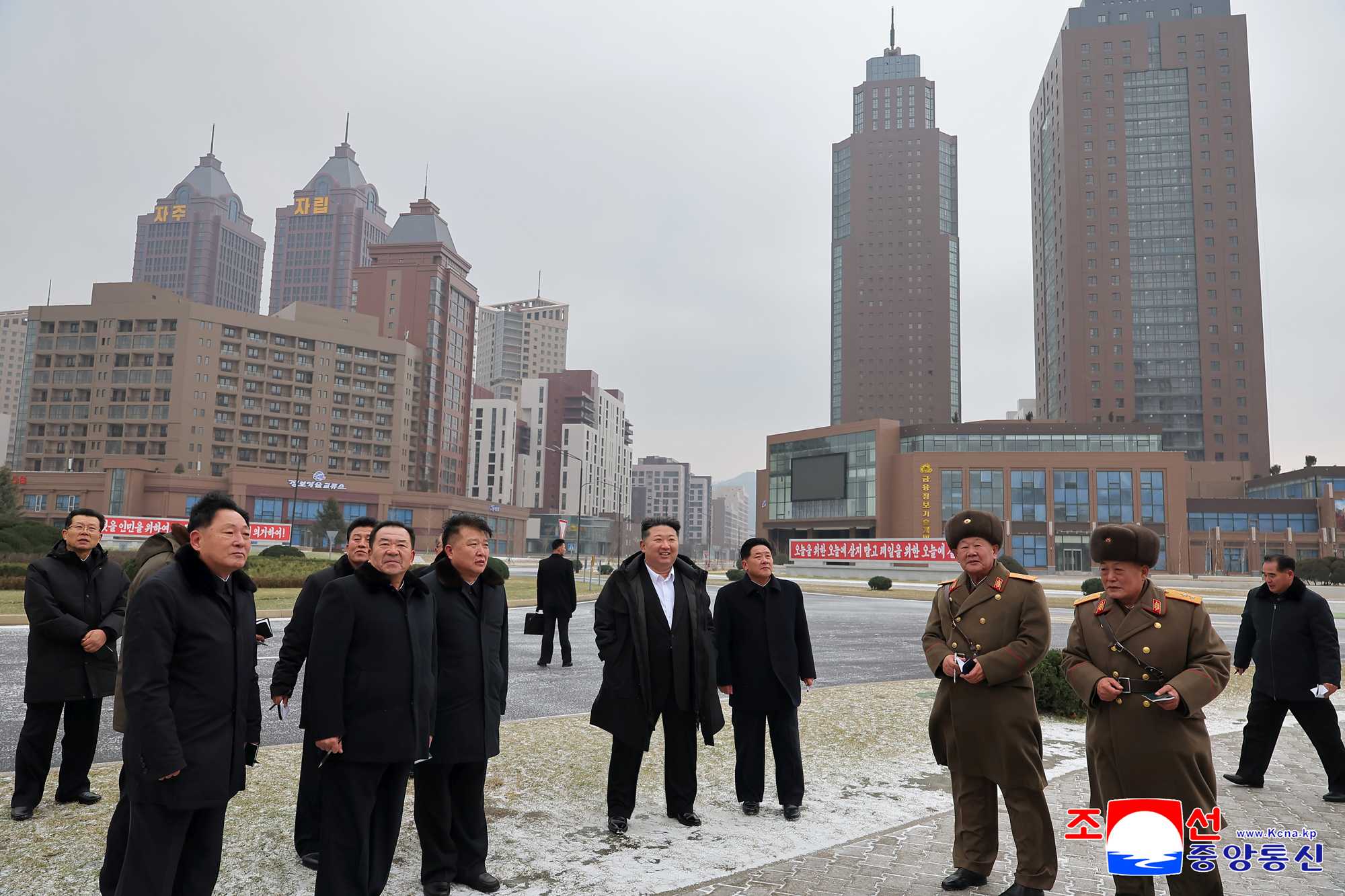Watching with pleasure the Hwasong area which has become a brilliant landscape of blooming socialist civilization, he said that the capital city has really changed and that the five-year-long hard-fought struggle is worthwhile. The scope and goal of our struggle are being further expanded and raised and the eye-opening changes are becoming a sure trend representing today’s Korea, along with the construction projects being widely conducted on a nationwide scale, he added with pride.