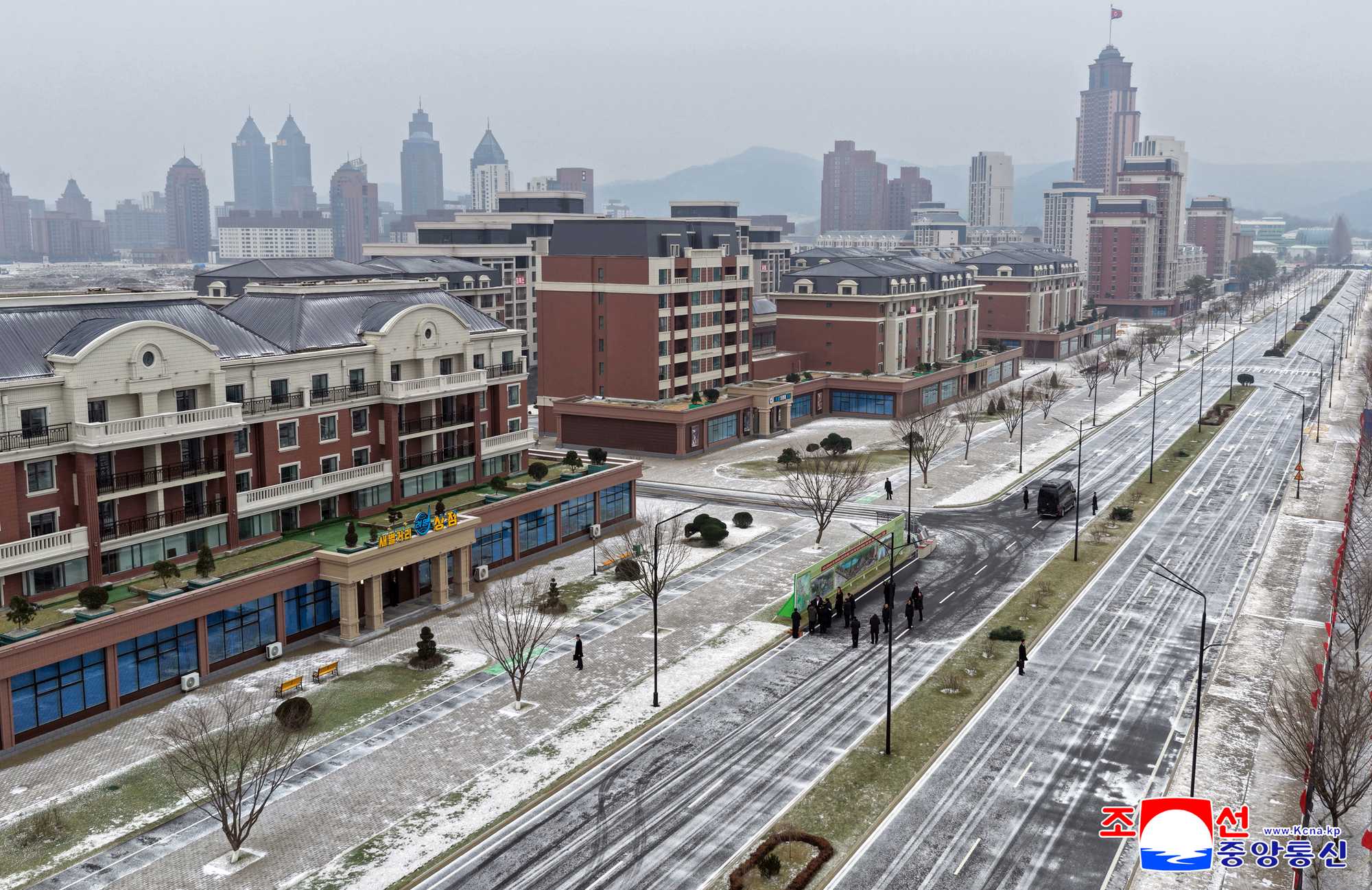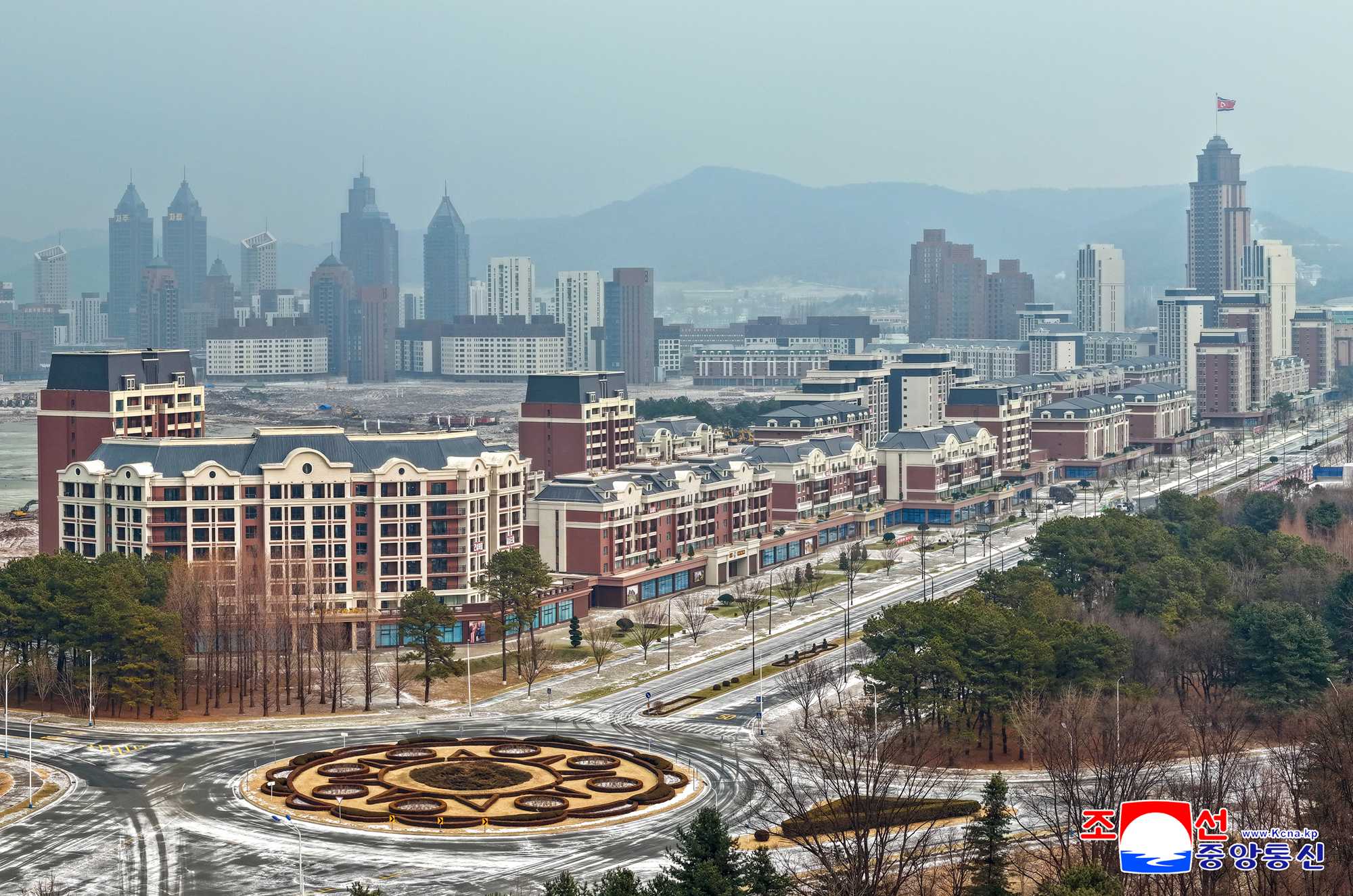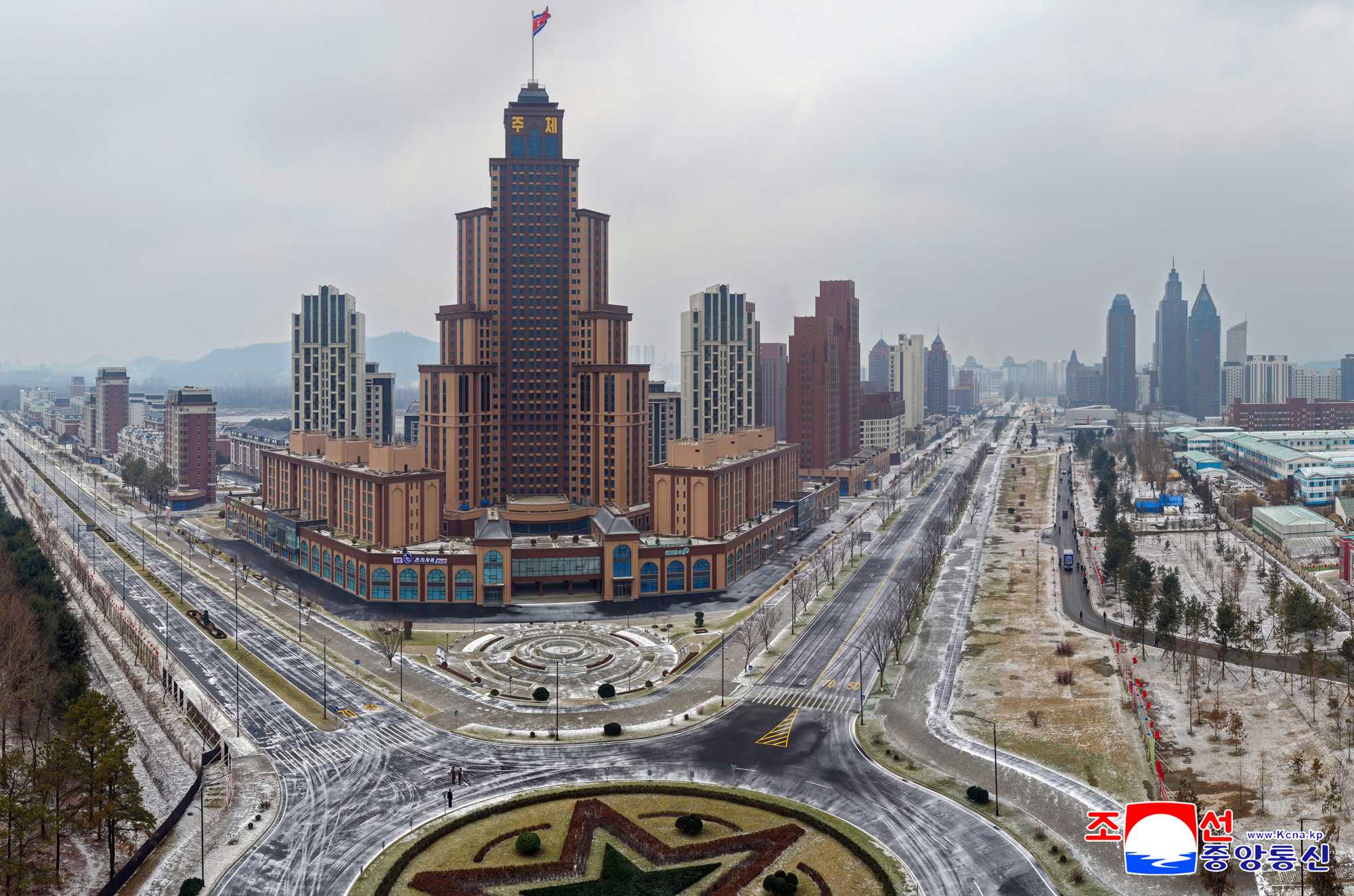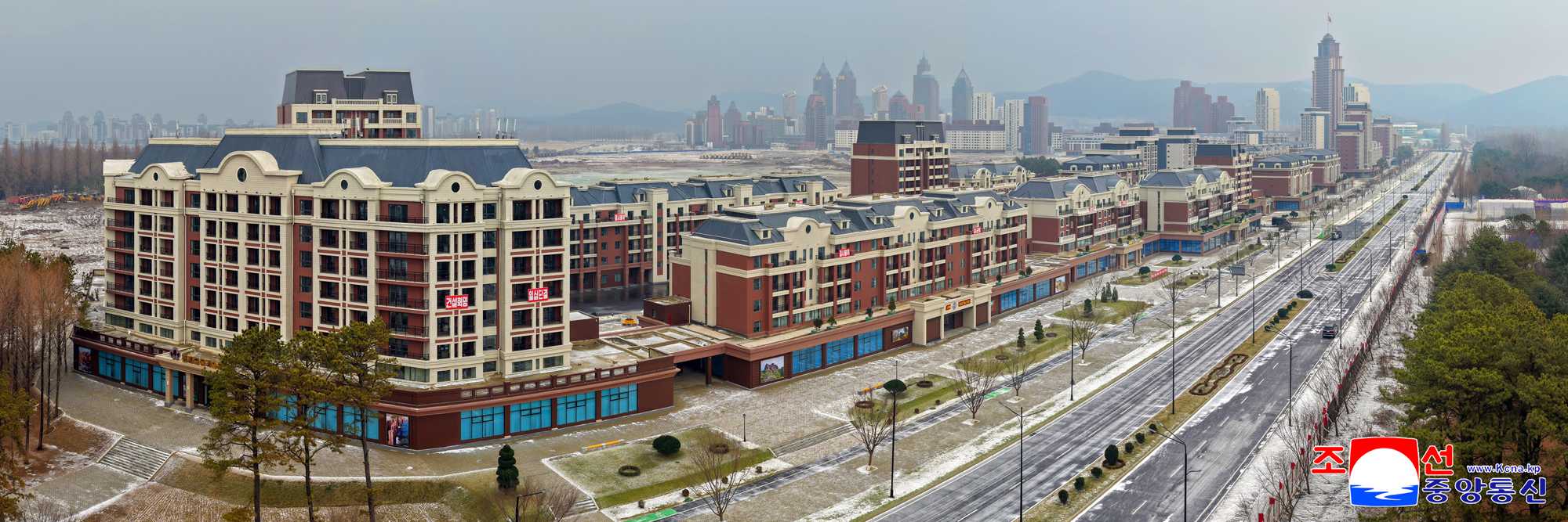 Thanks to his grand plan for the capital city construction and energetic guidance to turn the capital city of the DPRK into a world-class civilized city, a large architectural group of another style different from the past and embodying a good harmony of architectural formative and artistic beauty and advanced nature has sprung up in the Hwasong area to demonstrate its majestic and unique appearance.