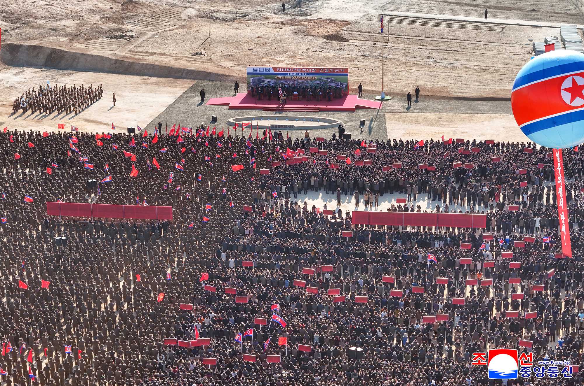 Kim Jong Un dug the first spadeful of earth to signal the start of the construction project, together with leading officials.