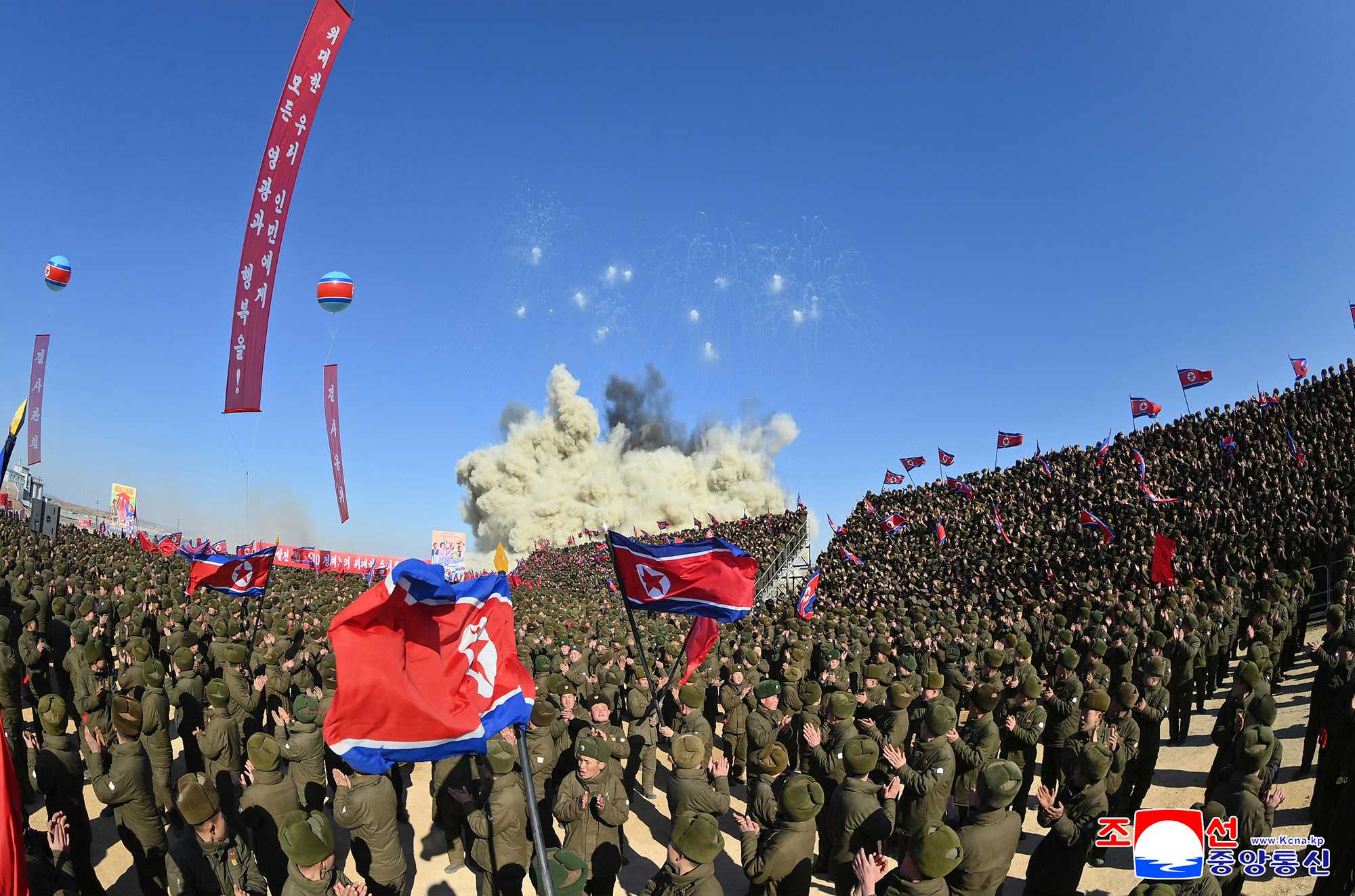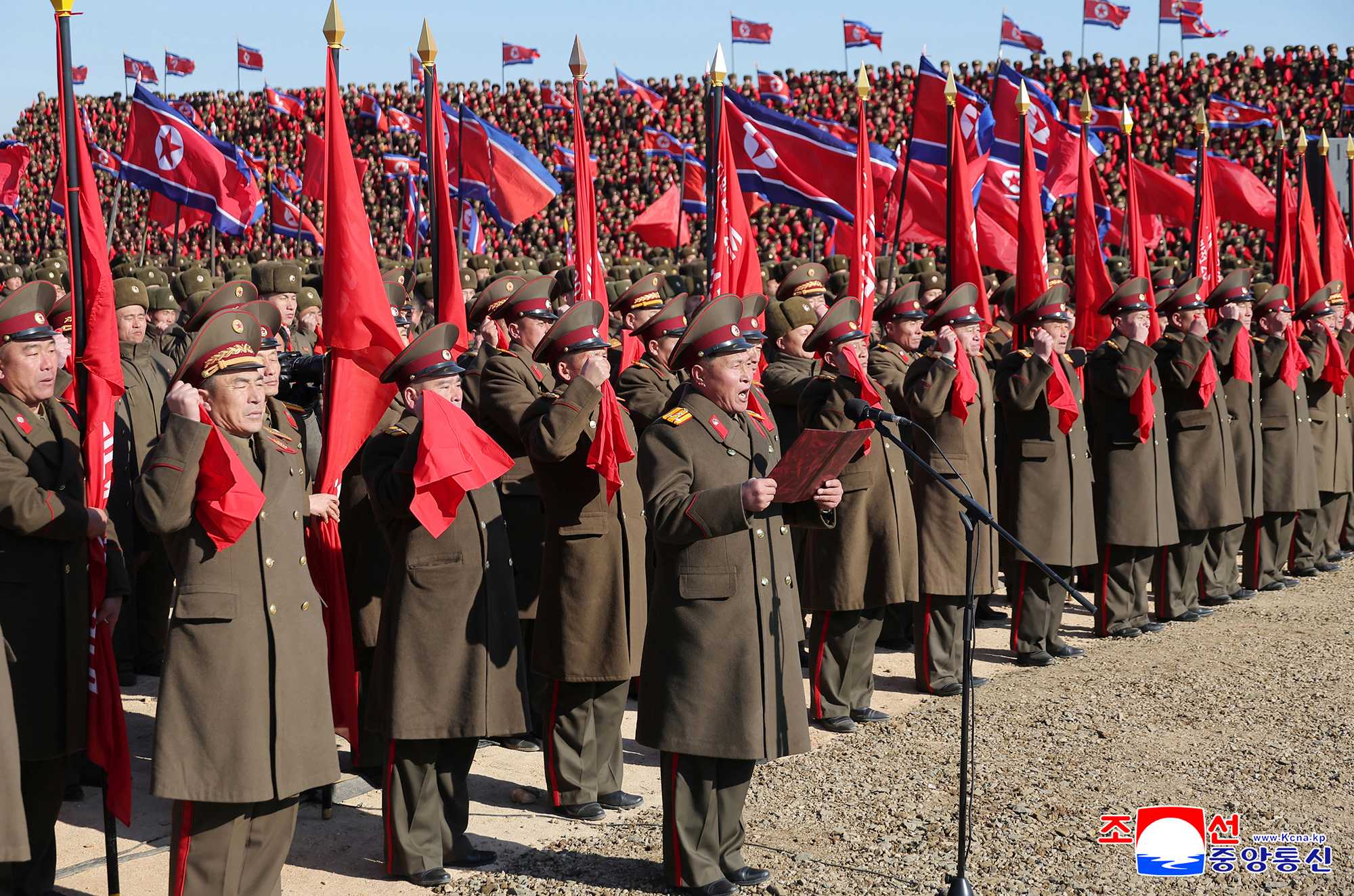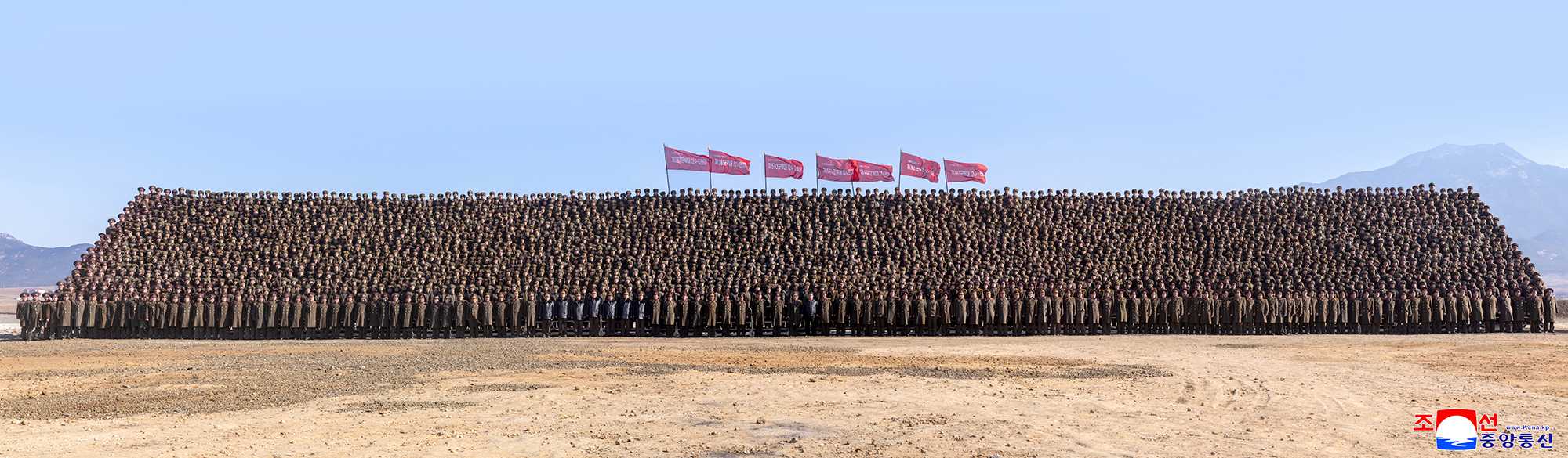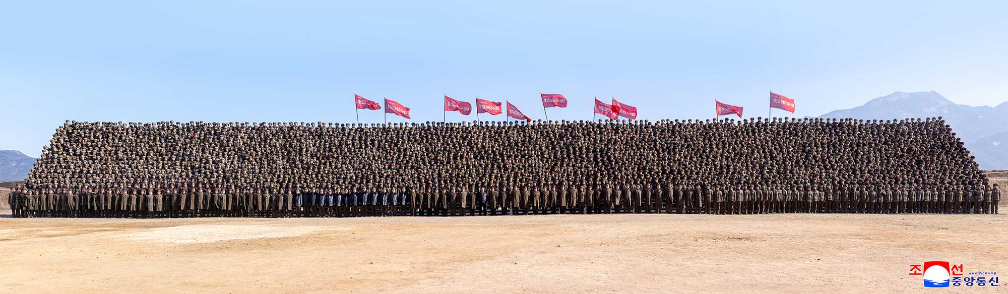 All the soldier-builders loudly shouted in chorus “Kim Jong Un” and “Death-defying defence” in reflection of their pledge of single-minded loyalty to add glory to their noble title as the pioneer of transformation and the creator of happiness for the country and the people by repaying the deep trust of the Party Central Committee with their spirit of unconditional implementation and power of staunch execution.