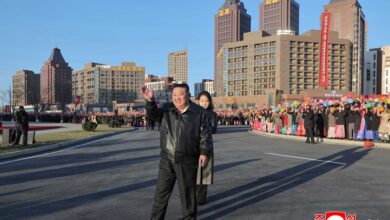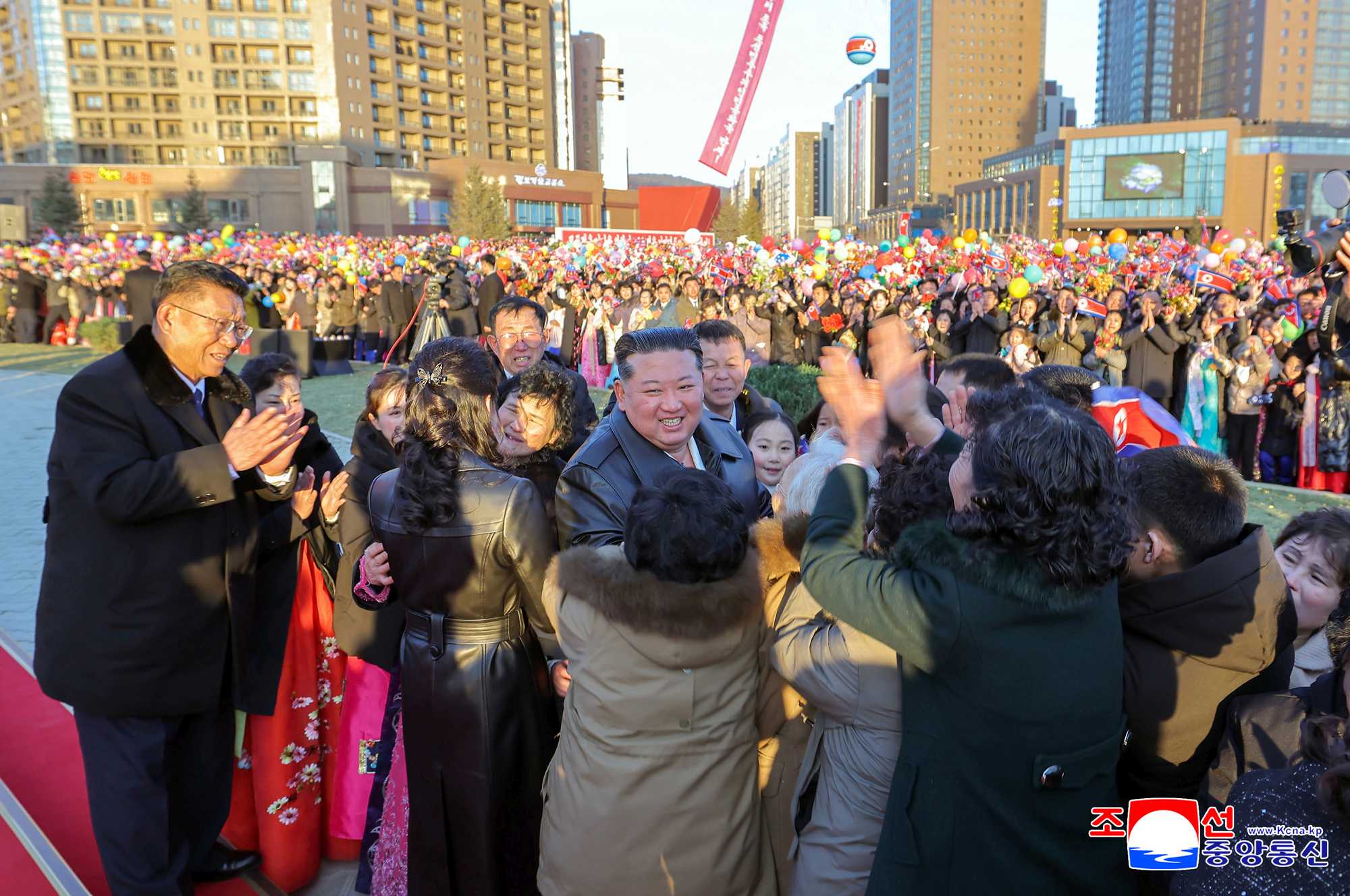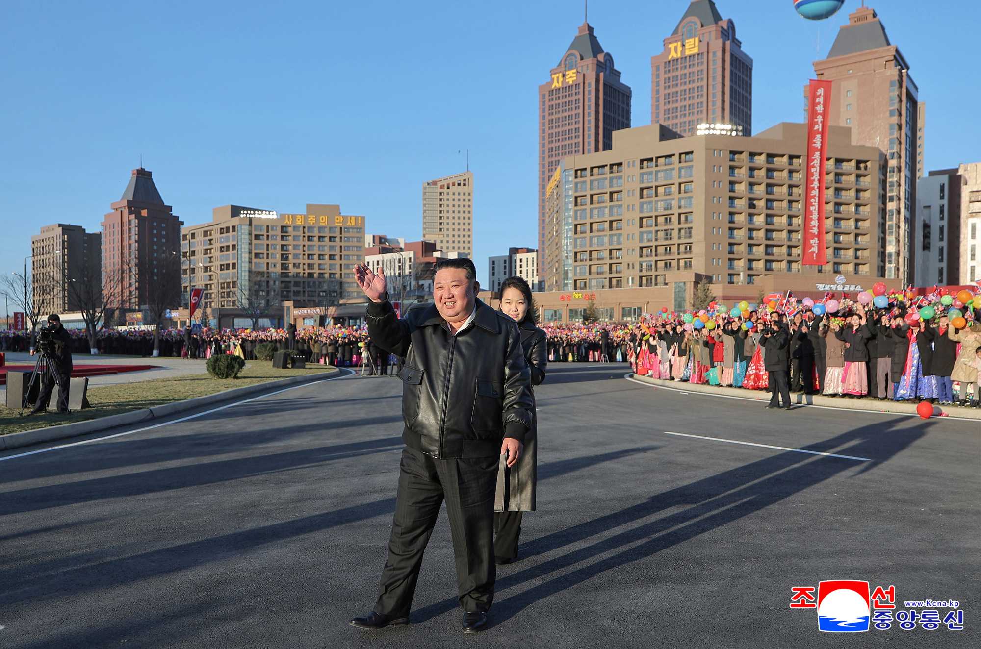 Kim Jong Un looked round the new street in the Hwasong area.