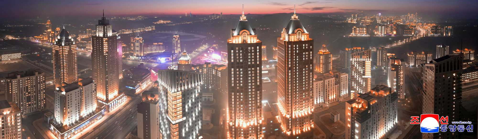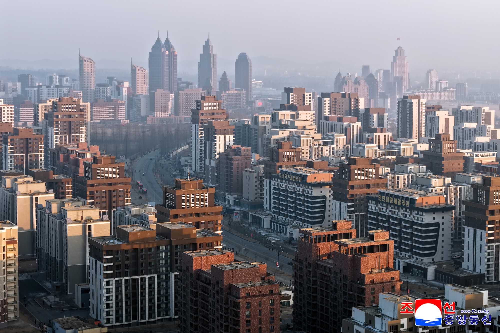 Apartment houses for nearly 60 000 families and public buildings epitomizing advanced civilization were built in Songsin, Songhwa and Hwasong areas alone to create new majestic and beautiful ideal streets for the people, showing the eye-opening development of the people-first architecture, and a modern urban administrative district was formed respectively. As a result, Pyongyang has been given a radical face-lift as befitting the capital city of socialist Korea in a matter of five years.