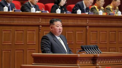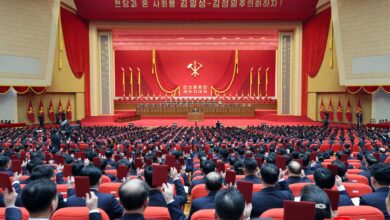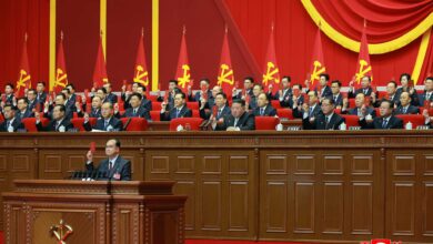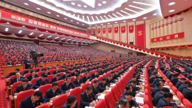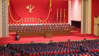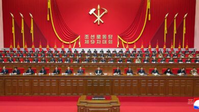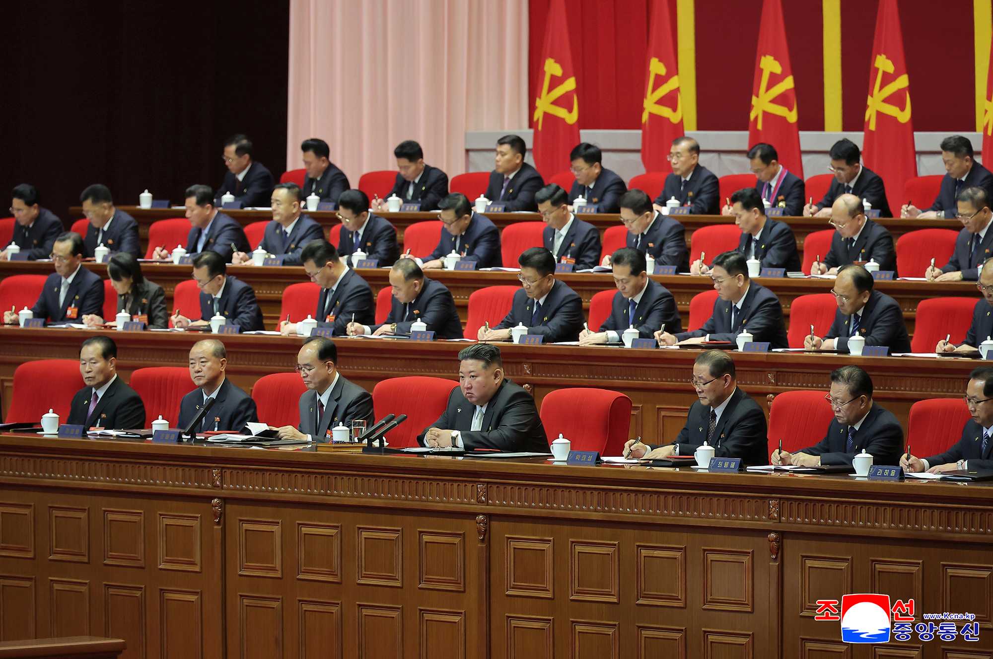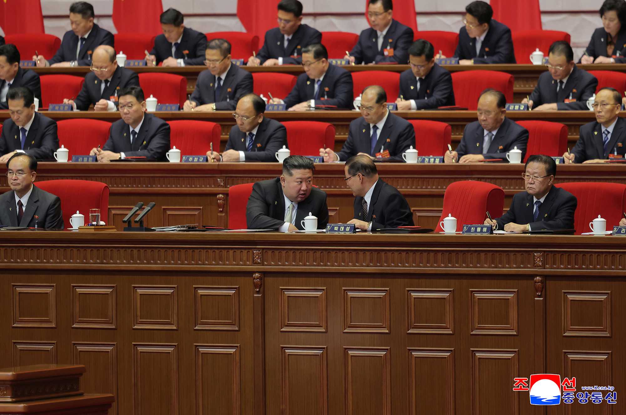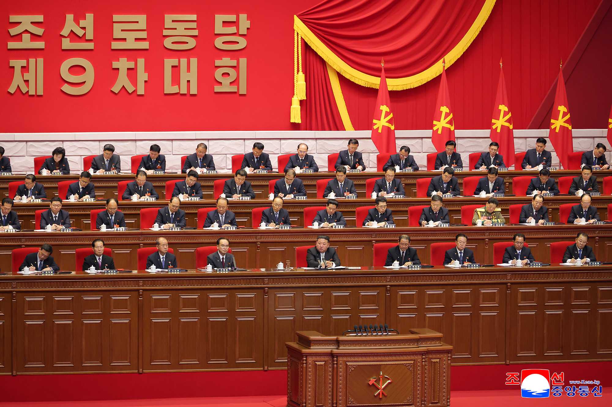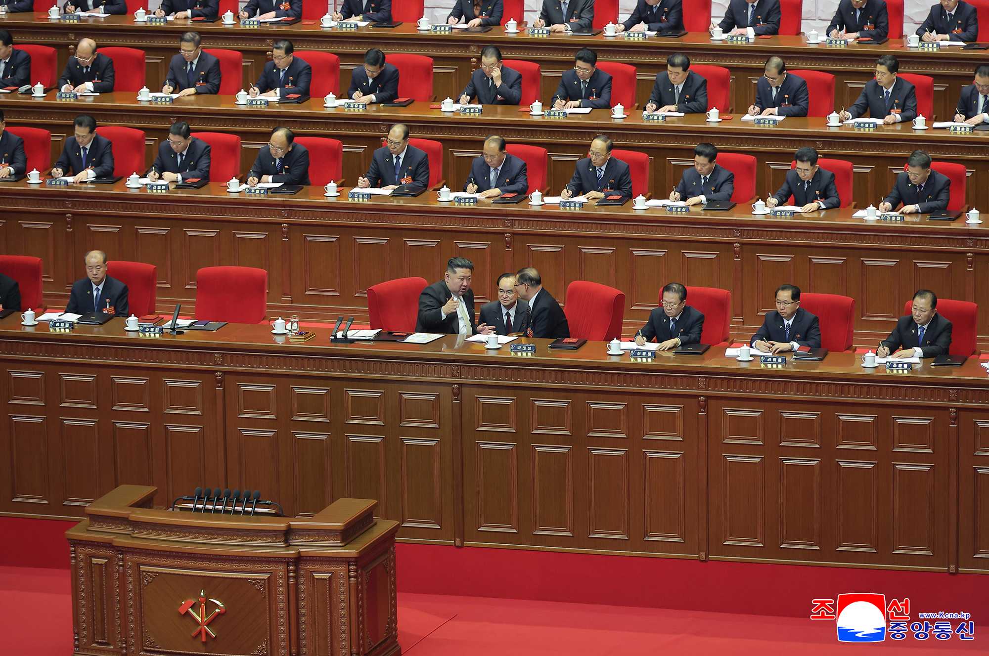 Kim Jong Un, general secretary of the Workers’ Party of Korea, took the platform of the Congress together with members of the Political Bureau of the Party Central Committee.