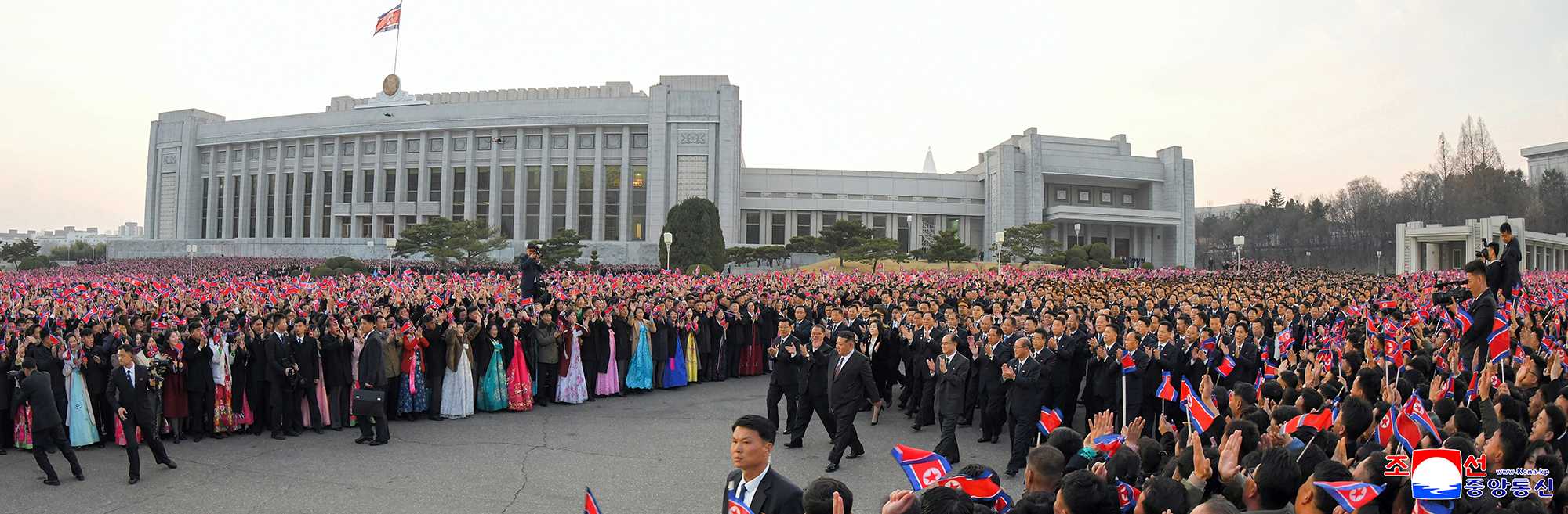 Among the audience were the participants in the First Session of the 15th SPA, officials of ministries and national agencies and citizens, youths and students in Pyongyang.