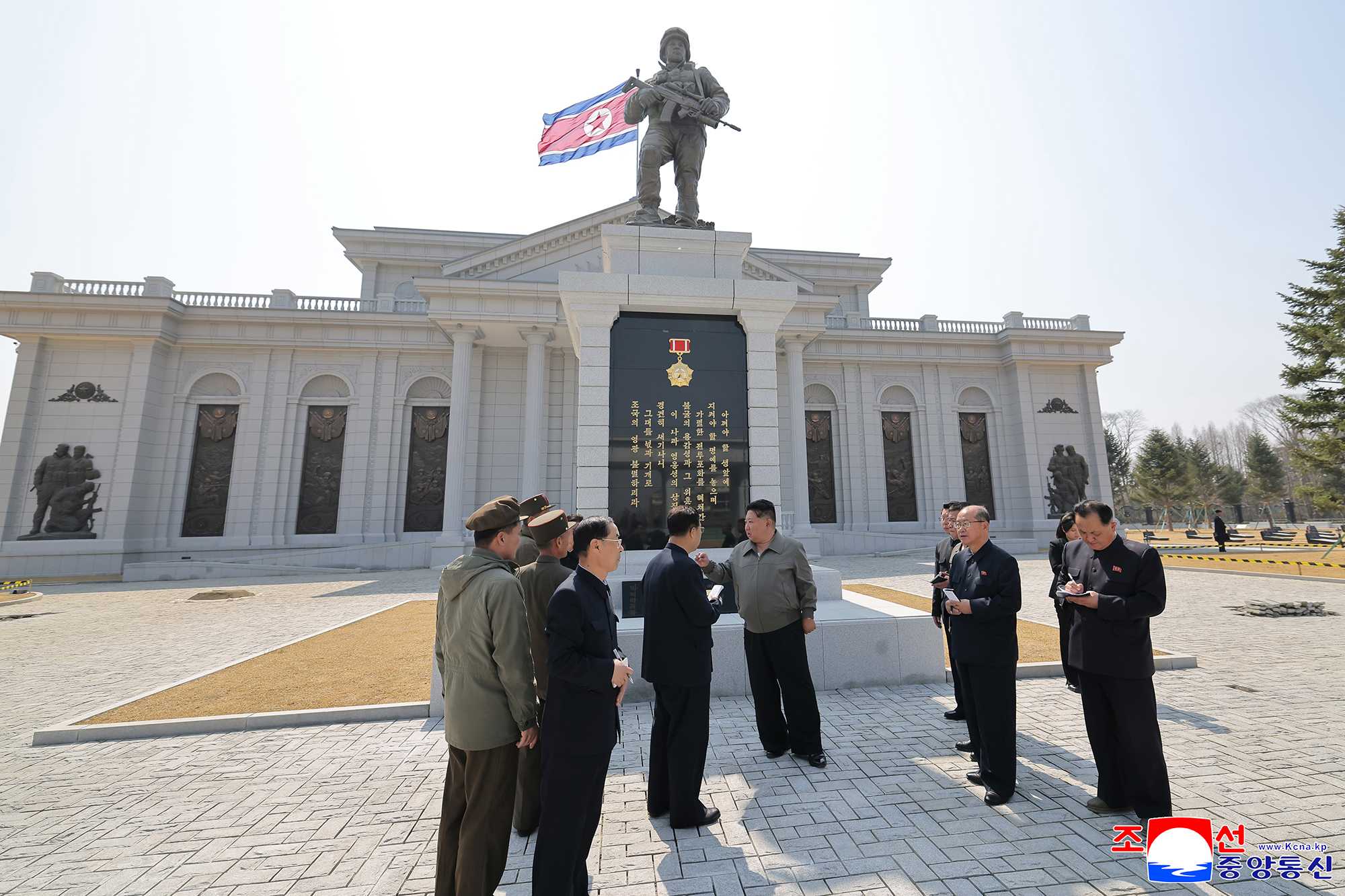 Comrade Kim Jong Un learned about the progress of the final stage of construction of the museum, the arrangement and exhibition of details about combat feats and the fixing of sculptures and symbolic memorials and highly appreciated them.