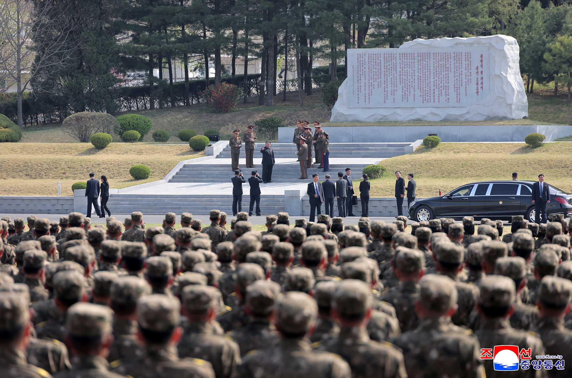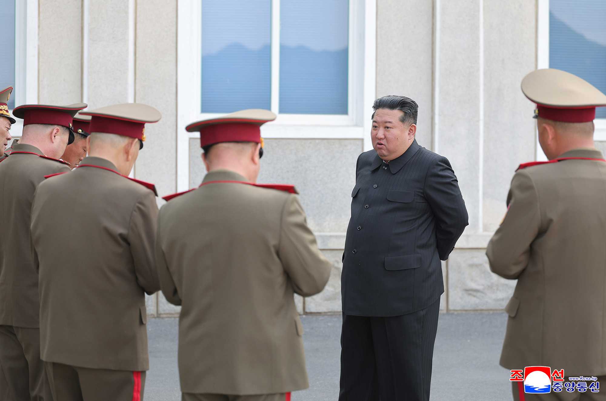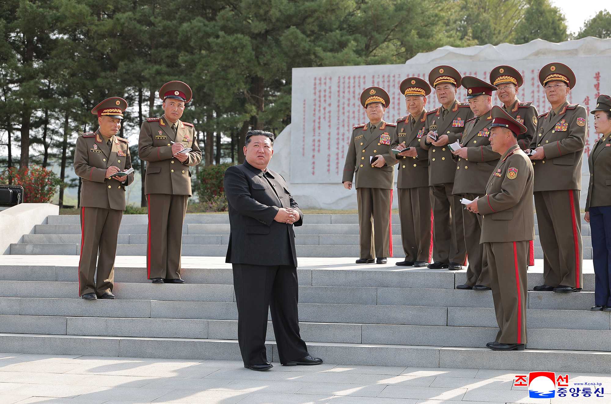 When he arrived at the headquarters of the combined unit, all its officers and men broke into stormy cheers of “Hurrah!” with the highest respect for him, an iron-willed brilliant commander who is ushering in a new era of building a rich country with a strong army in which the revolutionary cause of Juche pioneered with arms and its steady advance are reliably guaranteed by the greatest military strength.